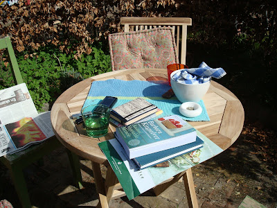 a new round teak table for "the circle" and blissful reading in the sunshine
