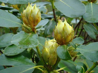 yellow rhododendrons about to unfold their blooms