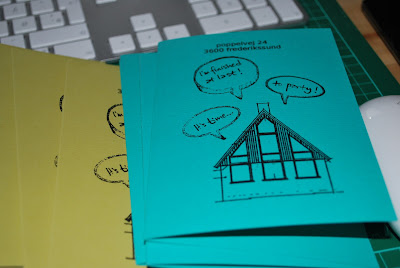 for the front, i copied one of the architect's drawings of our addition, then i stamped bubbles where the house itself invites to the party. on the inside, it's just straight text with the party details. i'm going to make one more print--this time a fun one, for the inside cover. i'm still working out exactly what that will be.