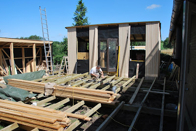 it dawned on me as i looked out the addition yesterday that husband is assembling three small buildings around a square base (decking). he is strategically placing other small buildings around the square of the property. he's playing with lego in adult size. it seems that play in childhood really does prepare you for life. i'm just relieved he played with lego and not with matches.