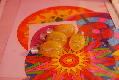the used lightbulbs looked so pretty sitting on sabin's desk on top of her colorful mandalas.