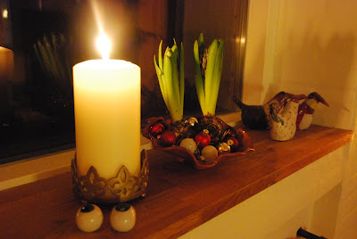 today is the day that the tide turns and we move away from the oppressive darkness back towards the light time. we had a little ceremony, lighting a candle next to hyacinths and our odin's eyeballs in order to help us look forward towards spring. in a way, winter solstice is like the beginning of a brand new year. how did you spend yours?