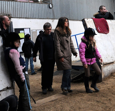a lazy weekend stretches ahead. sabin's downstairs finding carrots to give to silver star after her riding lesson. we made red velvet cupcakes last night and we'll take a couple of those for her instructor and the sweet little girl who helps out with the lessons. i'm wondering if the woman who looks like sarah palin will be there today. i have a hard time not staring at her. i sneaked this picture of her last time. isn't it uncanny? that's her daughter in the light pink sweater on the left. couldn't she probably pass for piper palin? poor family, i wonder if they know...