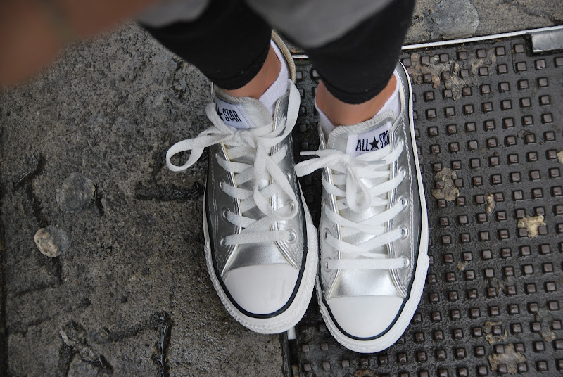 you could say it was the year of the converse for sabin. she got red hightops, silver lowtops and some with a print. the silver ones are by far the coolest - you can't go wrong with silver leather.