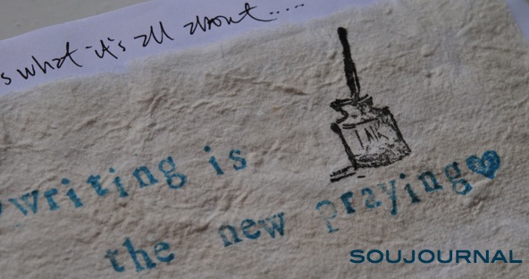 ever since the fabulous stacey childs of disco underworld fame wrote "writing is the new praying," to me in an email, i began to spread it through the blogosphere like a sort of life philosophy. the phrase, which resonates with so many of us, seemed to be begging to have a project attached to it. and somehow, behind the scenes (in this case, via email) - which is where so much of the good stuff goes on - an idea was born. it was inspired a little bit by the 1000 journals project, somewhat by this, a titch by a project at the brooklyn library, but mostly it was inspired by the notion that writing is the new praying. we got together with B from cuttings on a blog and the soujournal project was born.