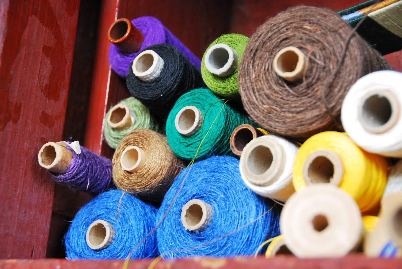 | a peek through a plant at the beautiful, unique, fish-laden woven window panels. |