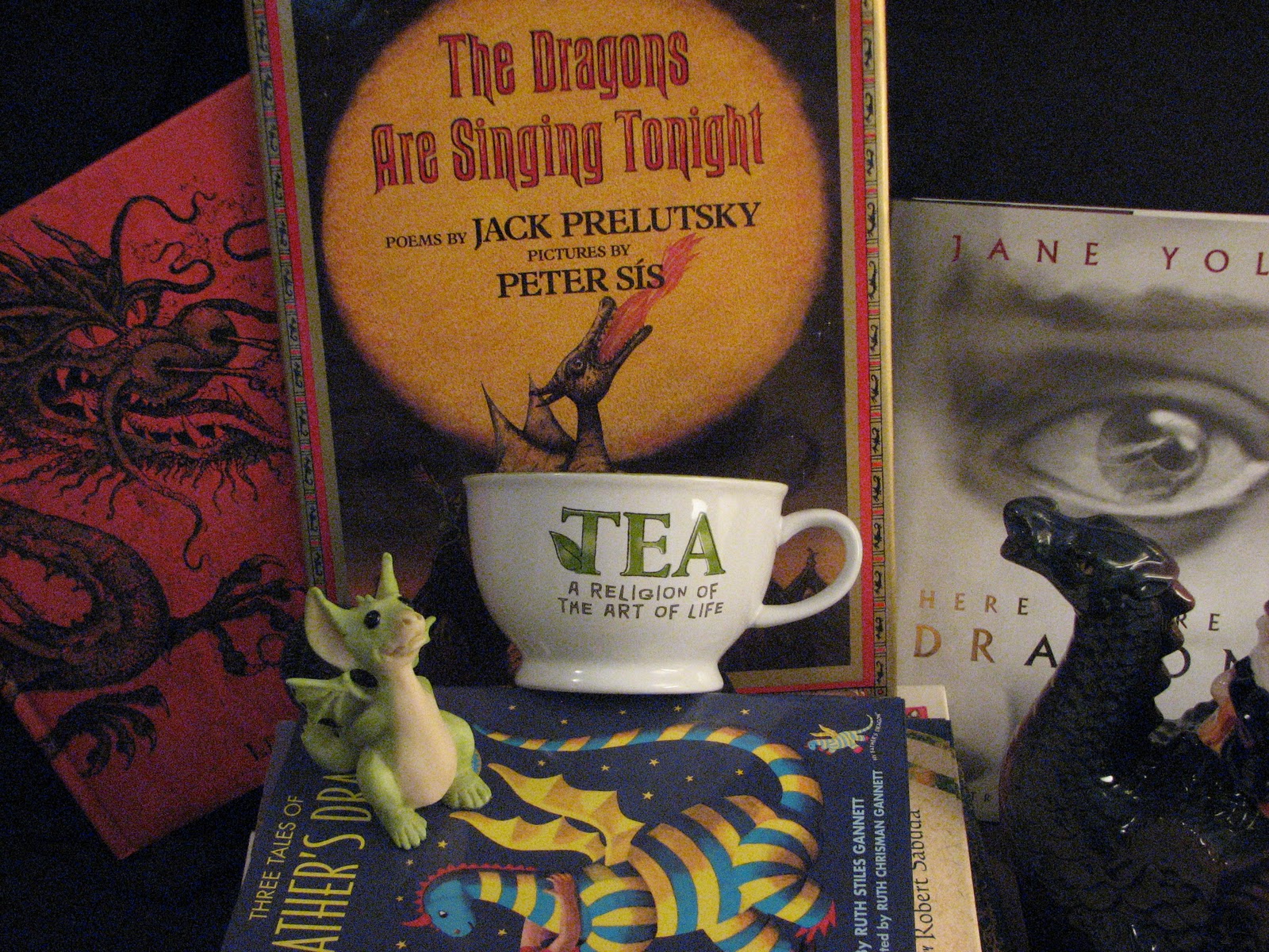 Tea and Dragons! Love it! I saw 'Peter Sis' the illustrator was mentioned. He is incredible. My husbands band 'Hectic Red' played at an outdoor concert at a library to celebrate Peter Sis's book about his childhood called "The Wall: Growing Up Behind the Iron Curtain." Check that book out!