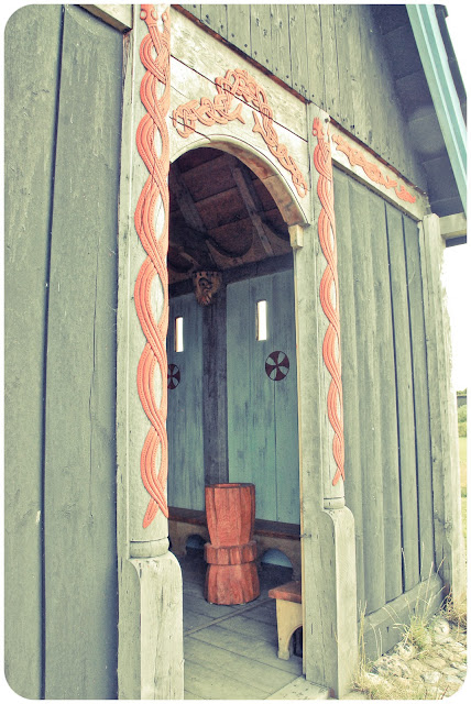 | a chapel that must be a replica from the period just after the vikings accepted christianity. it was a very cool mix of pagan and christian. not that most of christianity isn't that. |