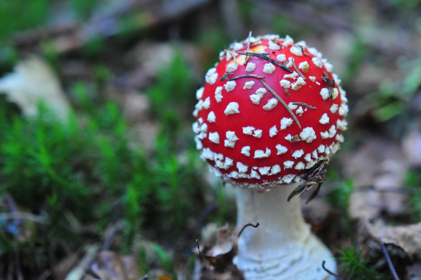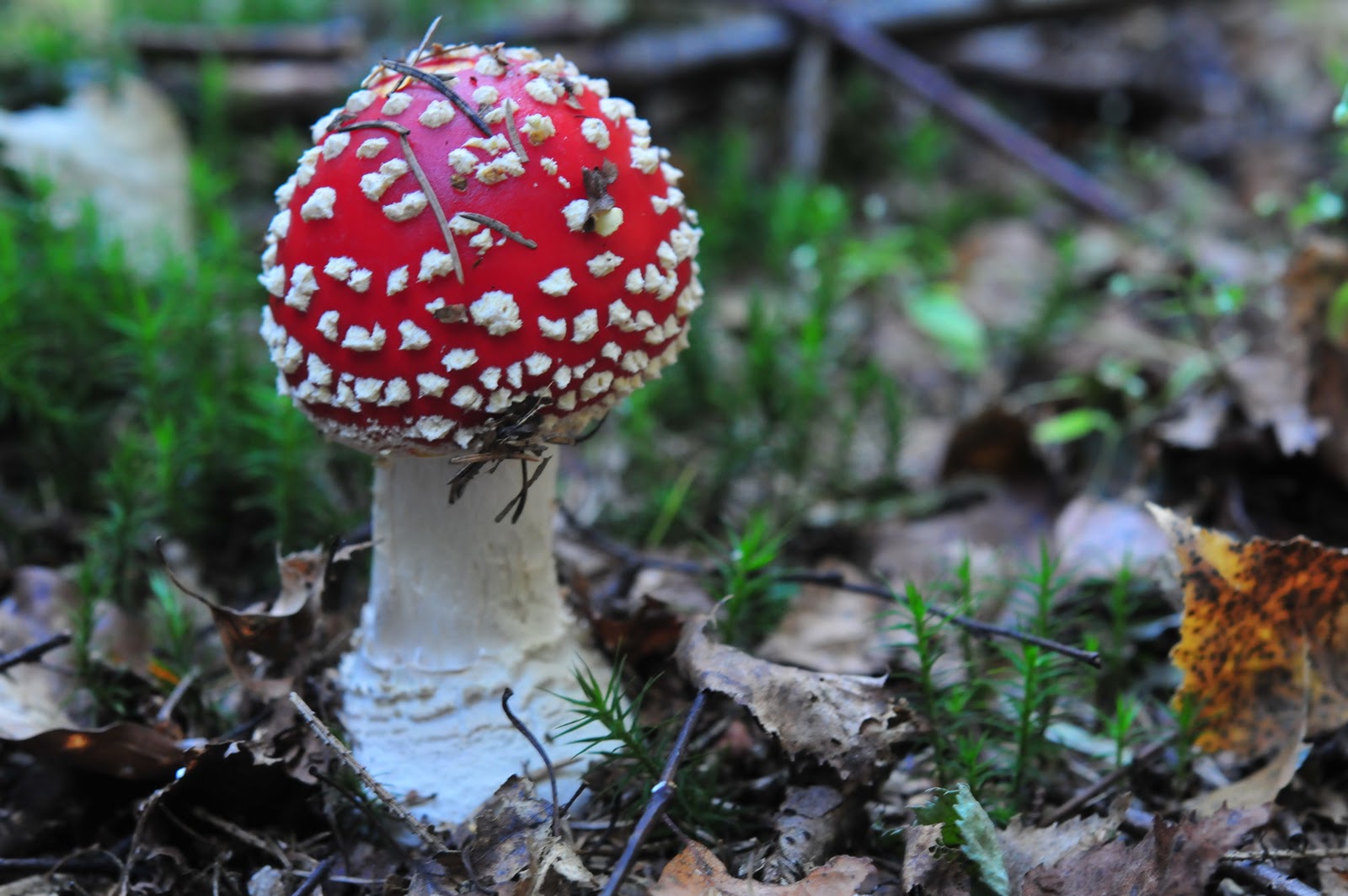 today was the first time i saw one of these poisonous little numbers in person. it's an amanita muscaria (rød flysvampe in danish). they're popular (fake ones, of course) as a christmas decoration here in denmark. they're deadly charming in their packaging - with pretty white dots on a bright red top - they look a bit like candy. however, we knew better and didn't even touch them, except with the camera lens.