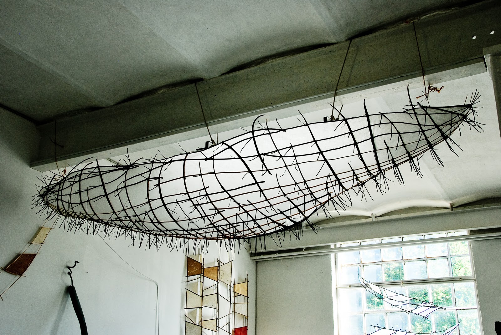 last weekend i visited the studio of artist jane balsgaard. she's one of six artists that have their studios in a lovely old building in frederiksværk. a trained painter and sculptor, she has been working for many years with natural materials - handmade paper, bendy willow that she grows herself - materials that she gently twists into graceful, lighter-than-air shapes that seem to float.  i was especially fascinated by her boats. she allowed me to wander her light, airy studio with my camera(s) in hand.