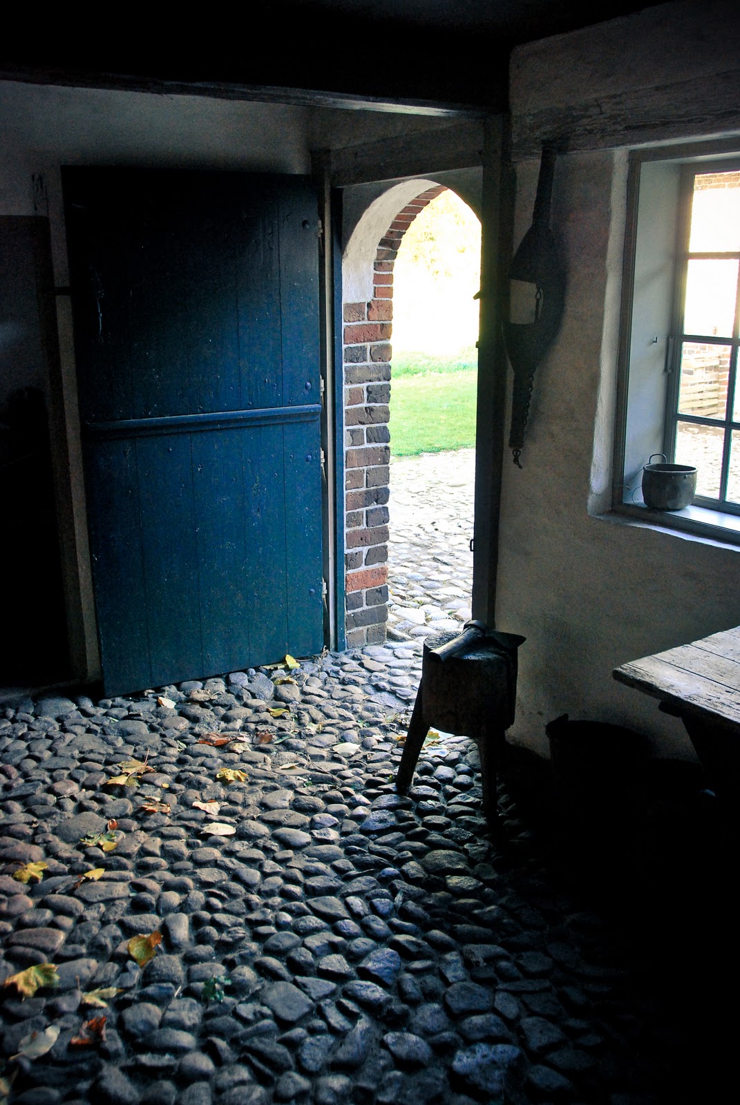 there were many cobblestone floors. we might experiment with that in one of the rooms of the part of our house that was once a barn. i love how some leaves had found their way in on the autumn winds.