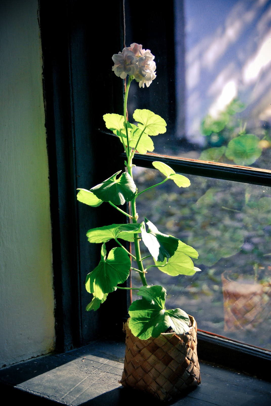 | this little geranium is clearly getting enough light. |