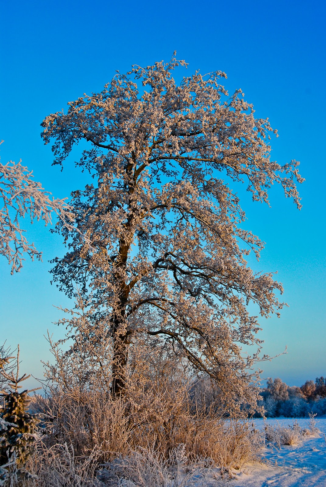 the photo was so very cool as a snow.., the tree gives life to the photo.,