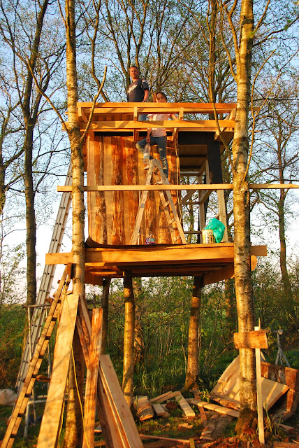 much was done on the treehouse during the gorgeous weather we had at easter, but it's not finished. you can't rush these things, you know. here are some shots from monday evening. a little bit more has been done in the meantime, but the light was so beautiful and golden, i just had to share these shots...