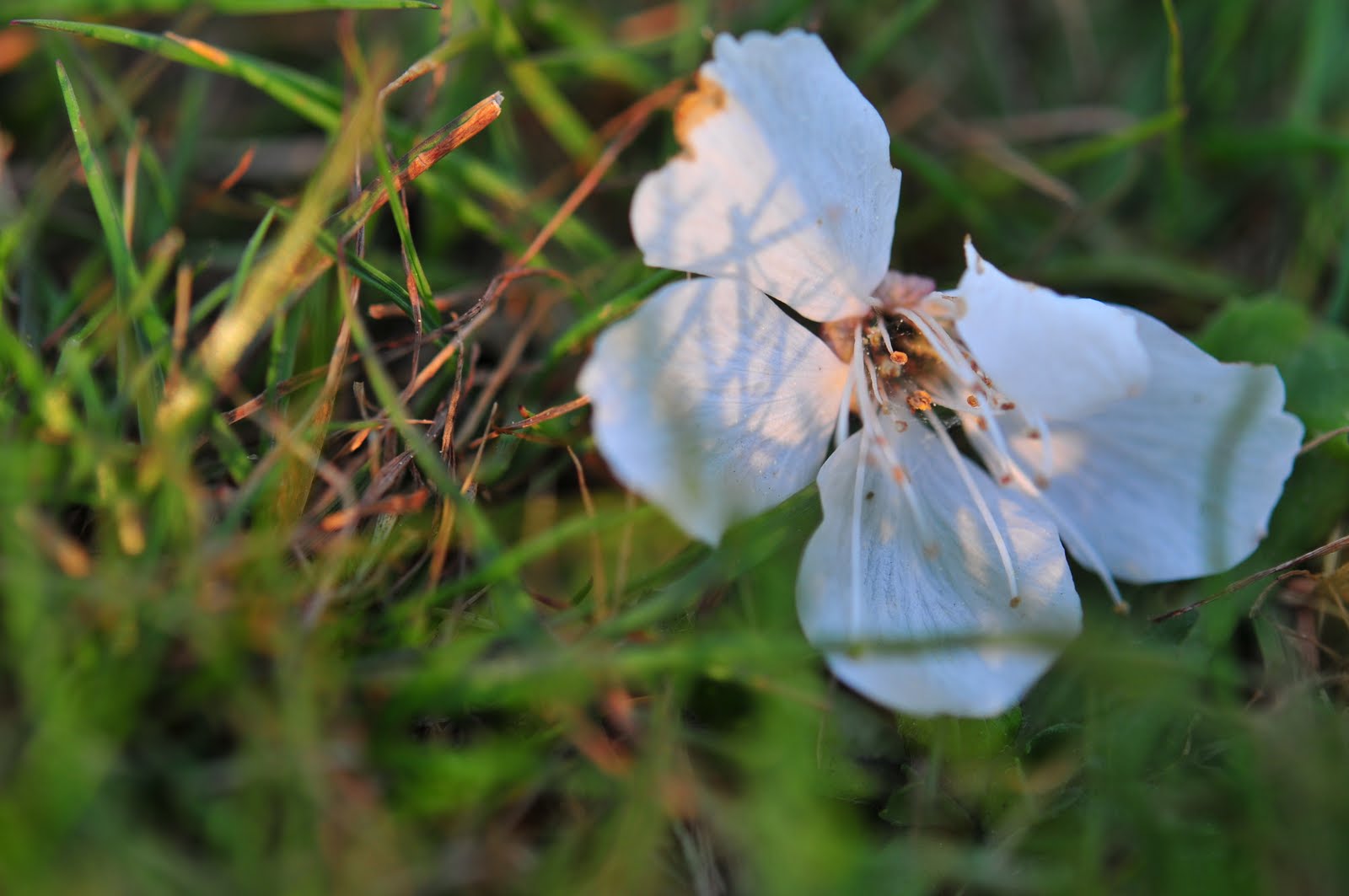| cherry blossoms carpet the ground. |