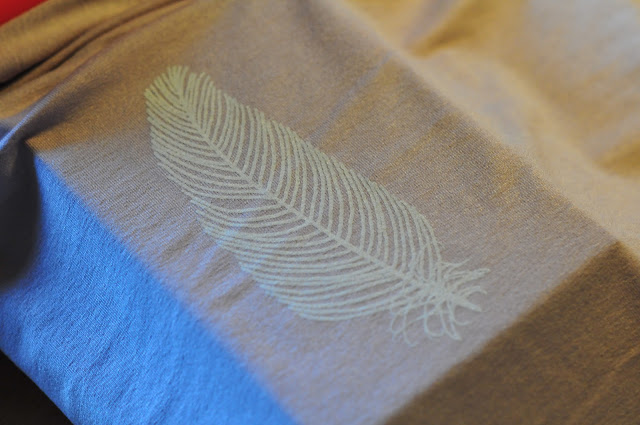 i drew up some feathers and burned two screens and got to work with the fabric inks. i've done plenty of gocco with paper in the past, but not much with fabric. i learned so much about how the ink behaves and how the screens behave. the hours melted away as i worked on the scarves. in a very good way. it was definitely a feeling of being completely in flow. and that's what it's all about, really.