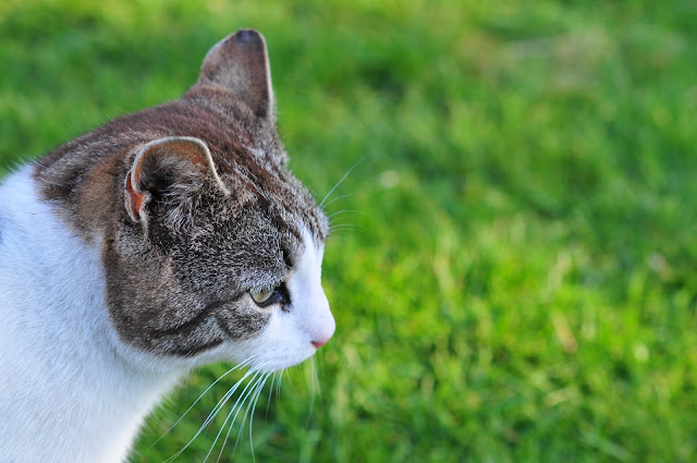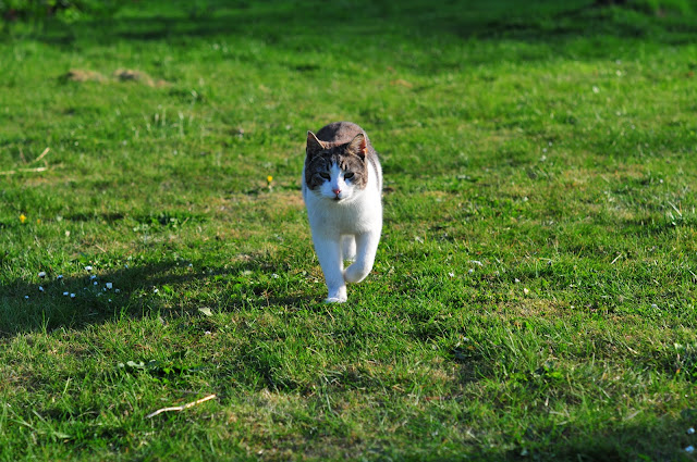 | and every morning, when i go out to feed, he's my buddy and lets me pet him. but if anyone's around? forget it. |