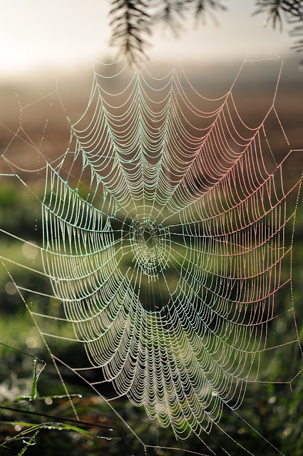 dew-laden spiderwebs sparkling in the morning sun.