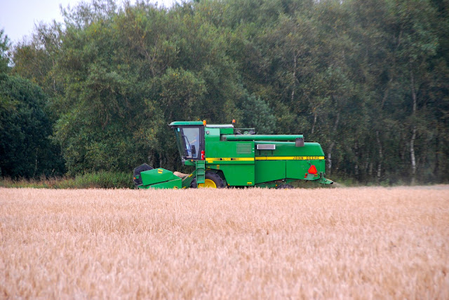 the farmers in the neighborhood are harvesting their wheat and rye and barley.