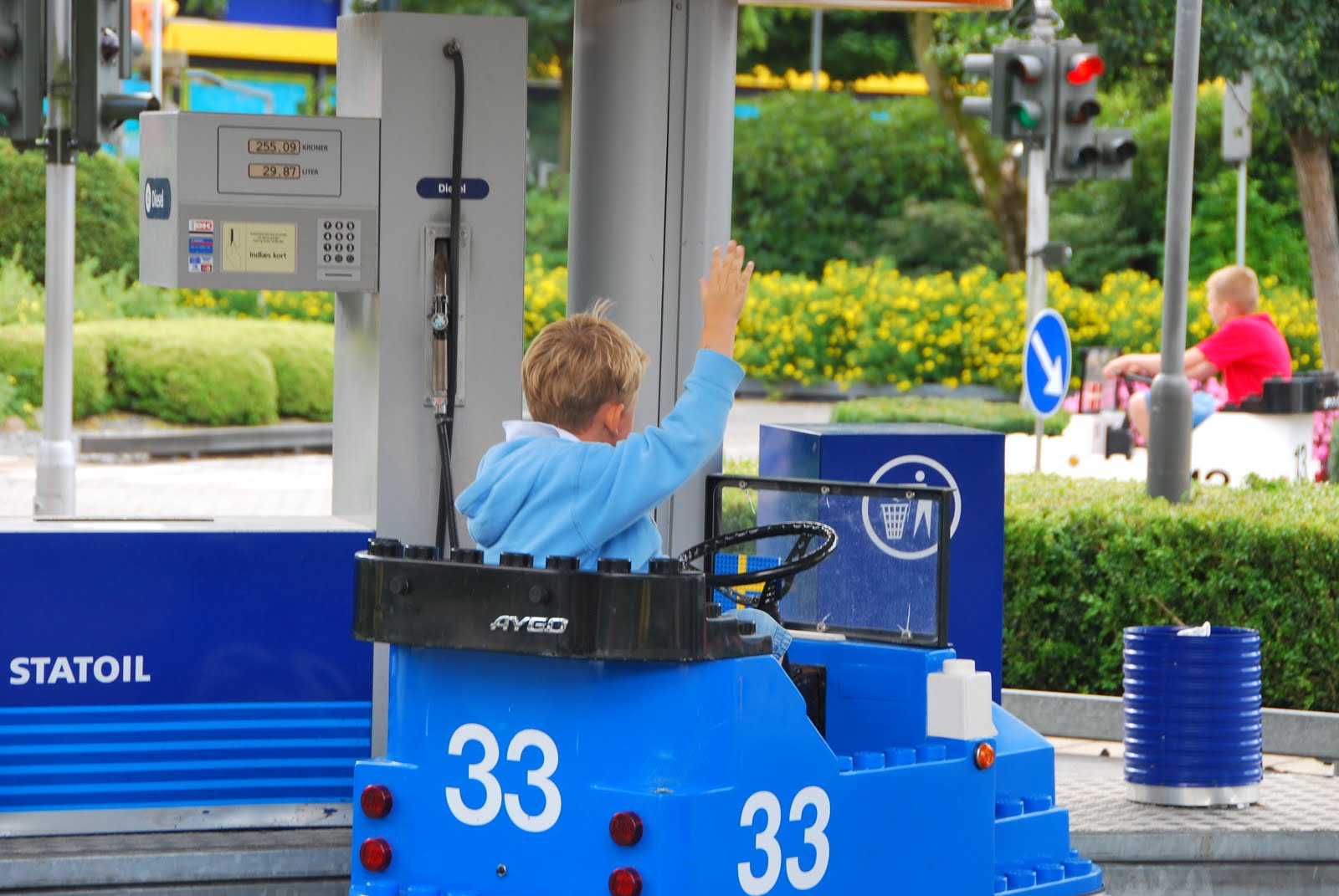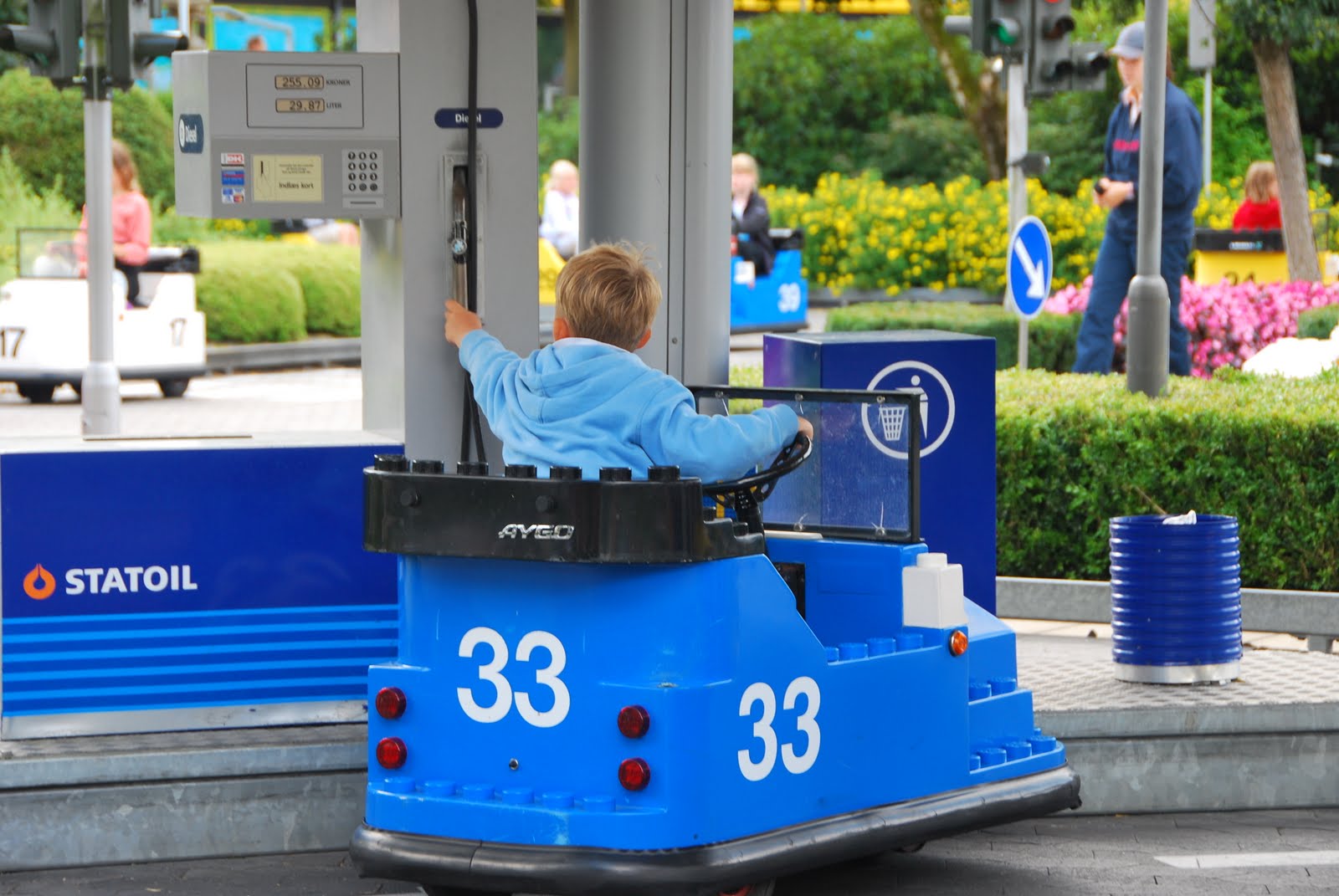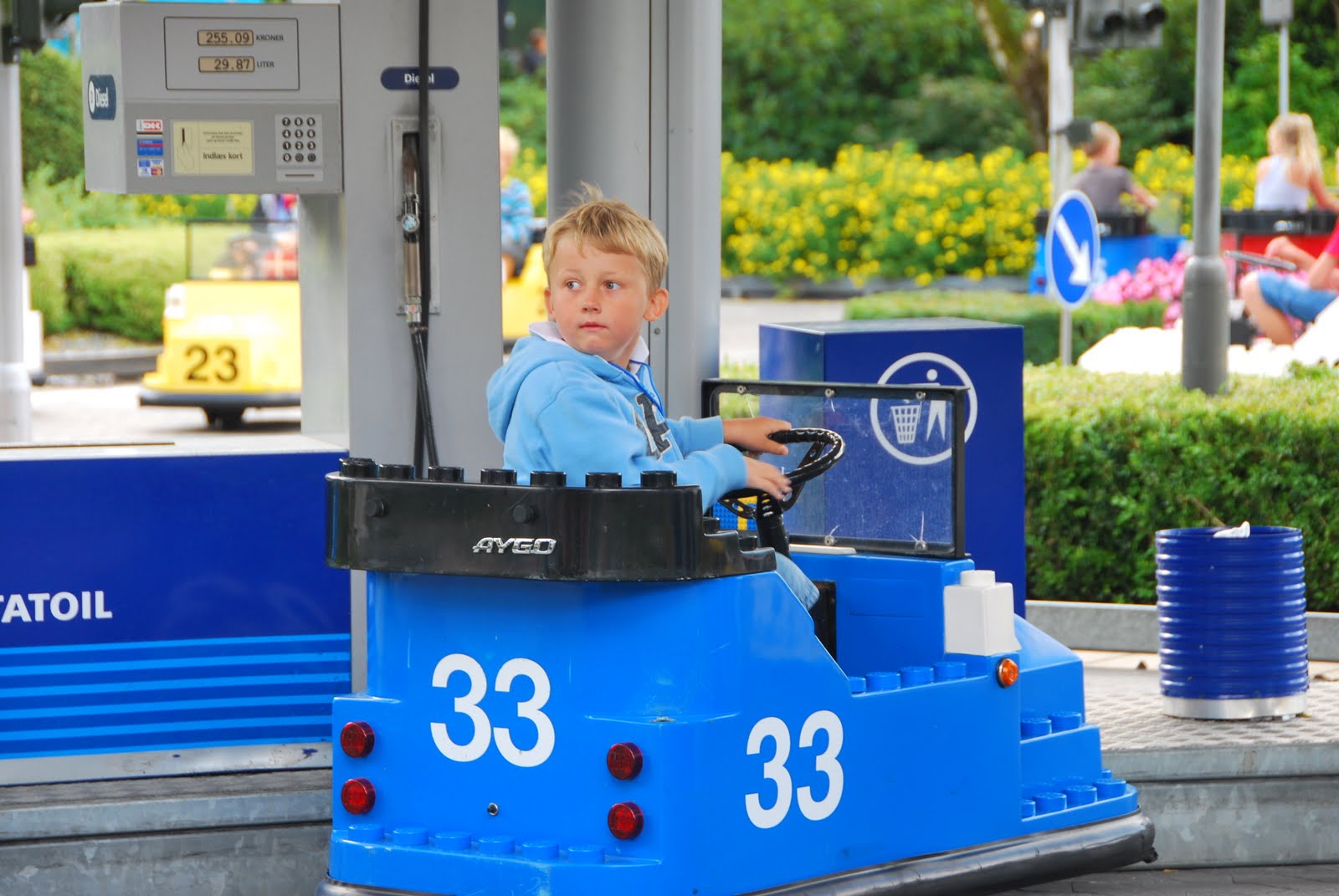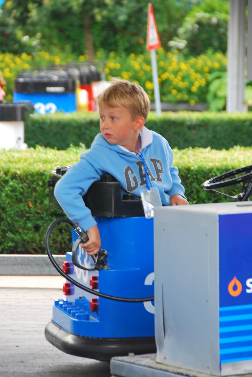 the multi-lingual lego employee helped him out and he immediately crashed into another car at the adjacent gas pump (i missed that photo - because i was laughing so hard).