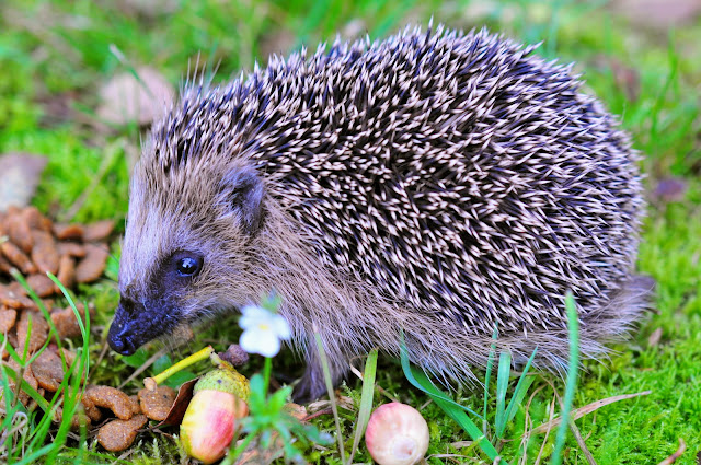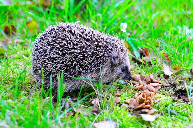 i found this adorable little hedgehog toddling around in the garden this evening. i'd been hoping to catch a glimpse of a baby one all summer, but hadn't seen one 'til today. she may very well be the cutest thing i've ever seen. and yes, i gave her a rather big pile of cat food. we've got to fatten her up and make sure she can make it through the winter.