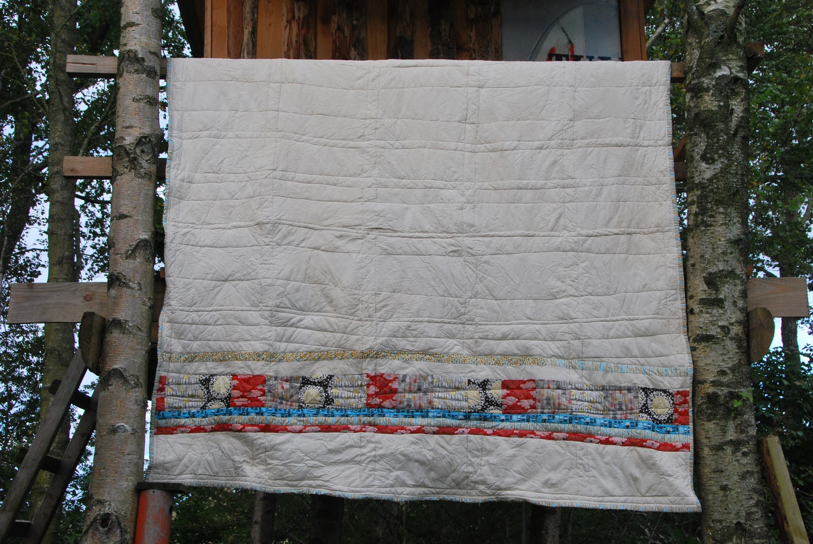 i was inspired to do some slightly random lines of quilting by the quilting done by filminthefridge on this quilt. the batting i used was natural cotton and rather thick, so this ended up quite heavy - it will be comfy-cozy for winter for sure. and i can tell you that after two days spent quilting it, my arms and shoulders were very tired. quilting is more work than you would think.