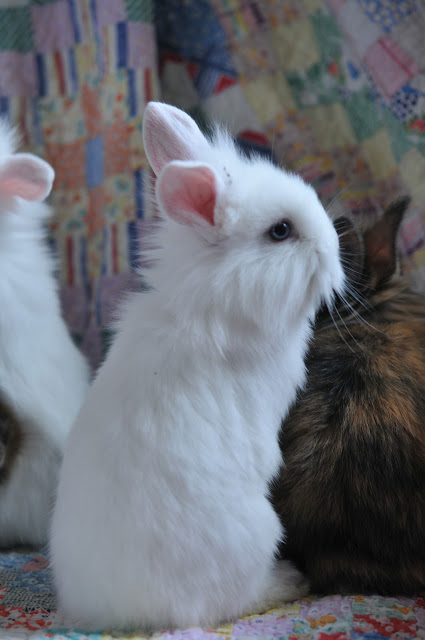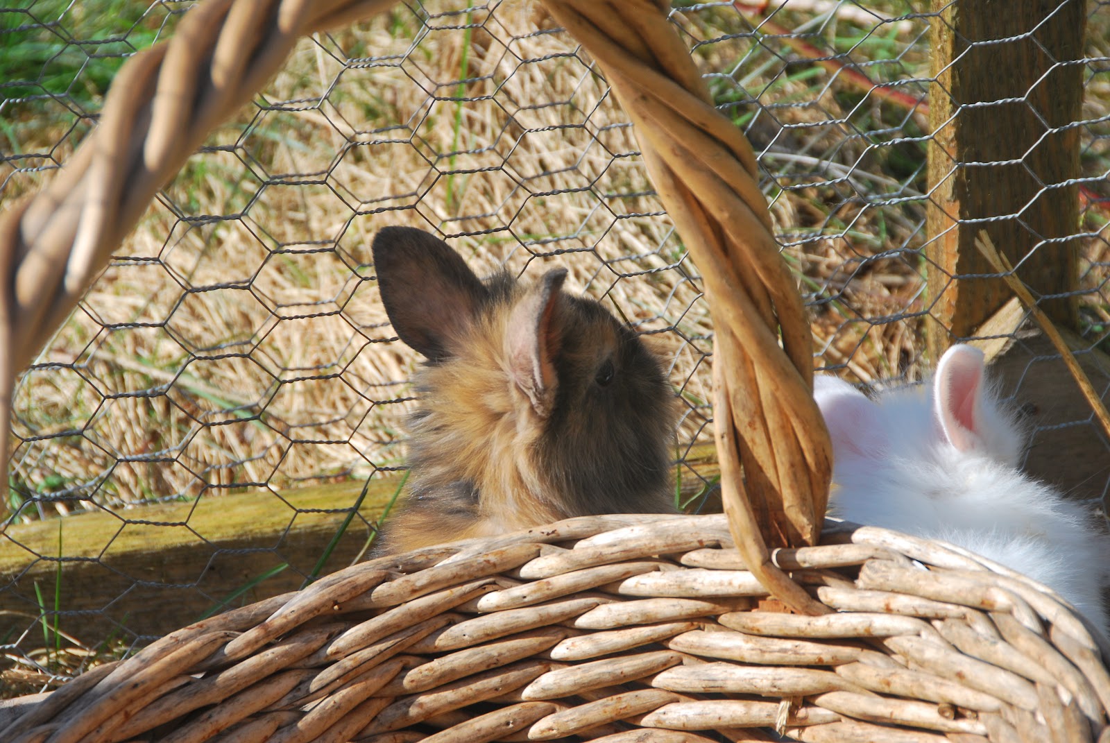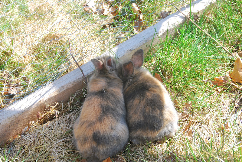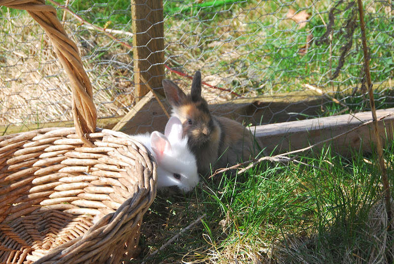 sabin and i spend a lot of time picking bunny greens (don't even ask how many rabbits we have). they love the new, tender dandelion leaves and we comb our property far and wide, filling a basket twice a day. today, our bunny foraging session took us down to our new apple orchard. to get back, we walked through our little shelter belt, which consists largely of pine trees. there's a path through this little forest that