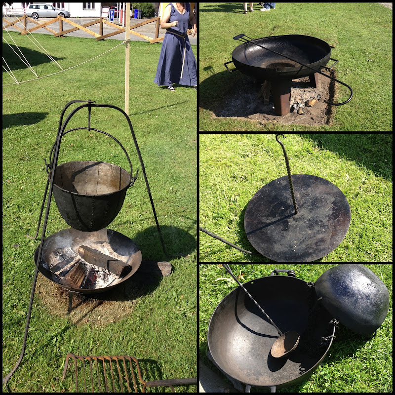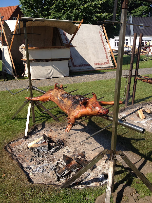 you can find viking markets here and there in denmark all summer long. there was one recently in jelling (where we keep our horse). there are people who go around from market to market, dressed up as vikings, living in the viking way - cooking over fires and dressing up in homespun garments. i envy them a little bit. and i wish tho' that they had a bit more of the viking spirit of trading, or even just selling stuff at the markets. because i so want some of this viking cooking equipment, but sadly, they never seem to want to sell it when you ask them about it. i think perhaps market doesn't mean what they think it means. or maybe it doesn't mean what i think it means. someday, i will get my hands on some of this stuff. and when i do, we will have REAL nordic food.