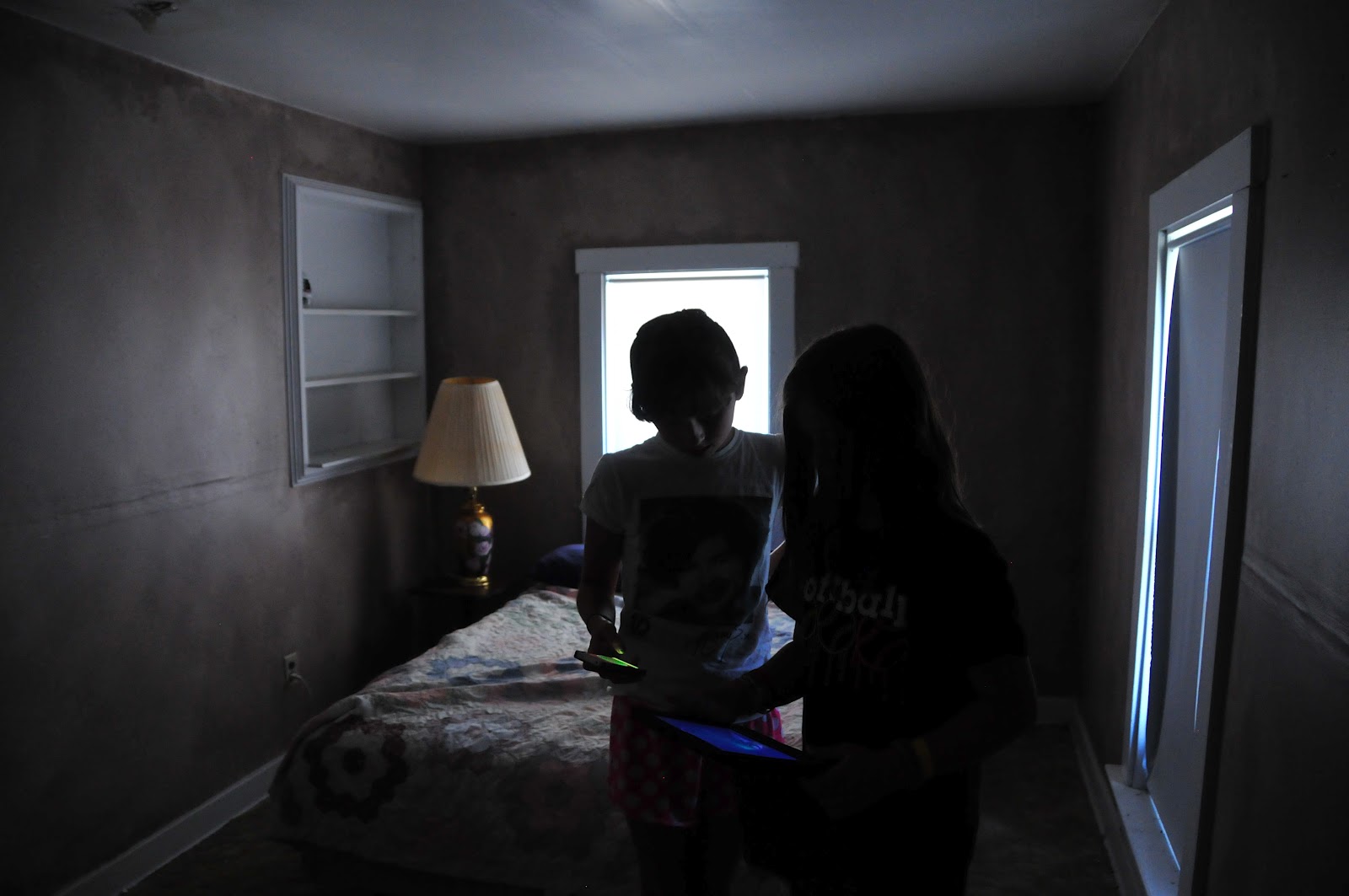 we went over one afternoon after a glass of courage known as a gin & tonic. the girls downloaded ghost detector apps and we asked a lot of questions, but didn't get any answers, nor did our detectors detect anything. apparently there are two sorts of ghosts - ones you can interact with and ones that are more of an imprint on a place - endlessly repeating the same event, like an echo. this ghost is thought to be that sort. they say a little girl died in the room and perhaps the scream is that of her mother in despair.