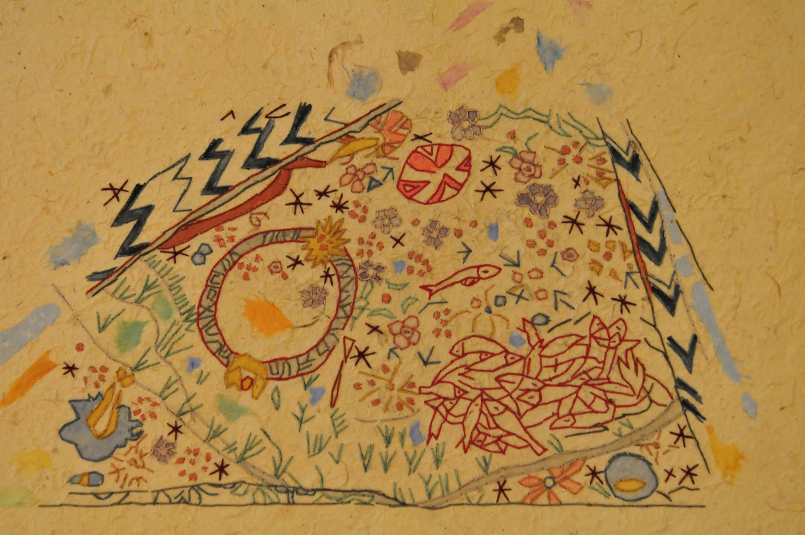 i found myself quite emotional looking at them. they're evocative and have so much going on in such a small space. they provoked quite a longing in me...for ancient times, for symbols, for travel, for cave paintings, for small stitches, for some random yet ordered.
