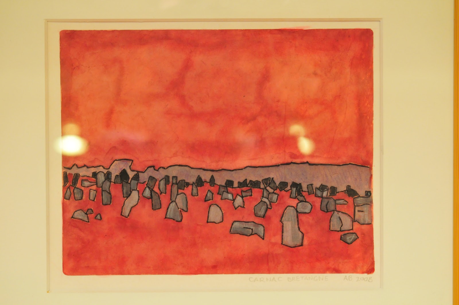 | behind glass, hence the reflections of the lights. |