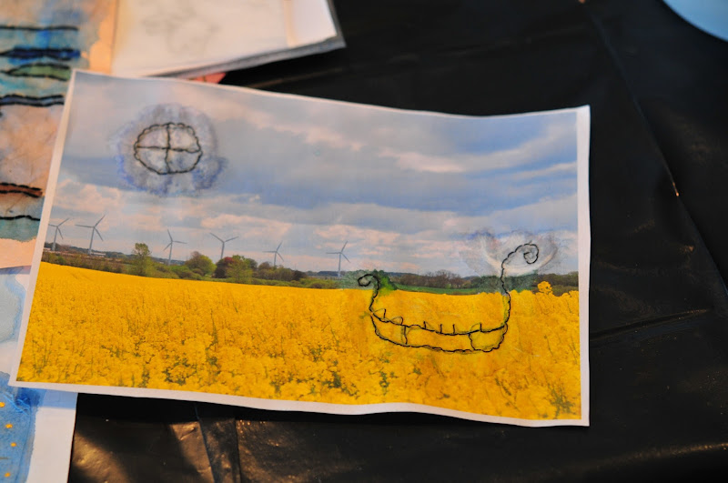then we stuck the little embroideries onto a printed photo with a glue stick.