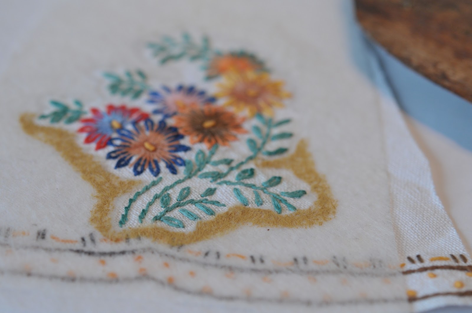 once it's fully dry, you can use colored pencil to blend it into the background better - mine was too wet that day, so i haven't done that yet. this is a technique i definitely want to play with a bit more, using my own embroideries and all of those stones i've been gathering.