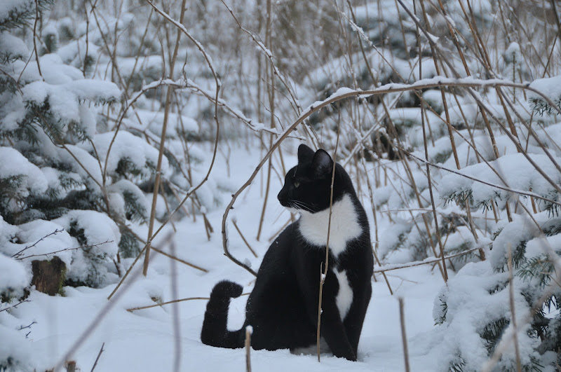 even frankie frolicked and attacked falling bits of snow here and there, enjoying himself before coming in to warm his feet and have a morning nap.