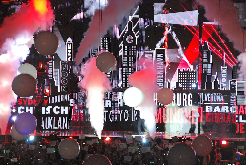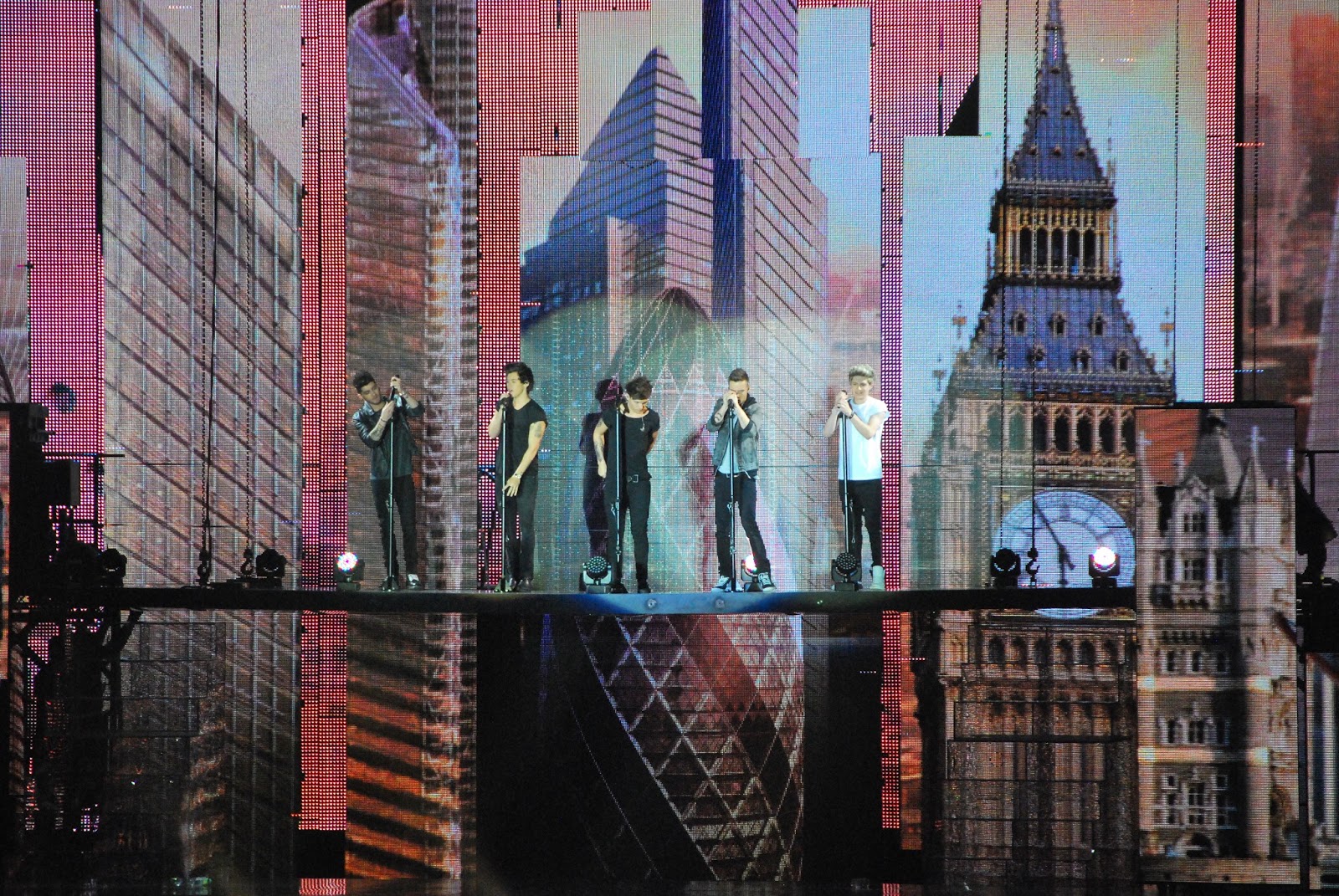 it was really worth the drive and the €50 per ticket. i loved the graphics - we could see the crew with computers and cameras down in front of us, expertly producing the show as it happened. and they did an awesome job. i loved this monty python-esque set - it even includes a blimp flying a red london double-decker bus. it seemed clever and not a gimmick.