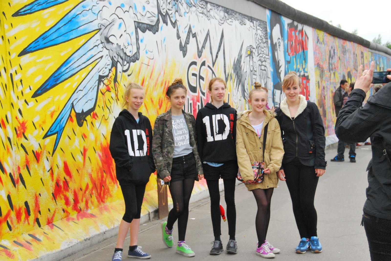 we walked in search of a quick dinner before the concert and came upon the berlin wall east side gallery - a section of the old wall (had to have been reconstructed, if you ask me) that was decorated by various artists, many of them apparently russian. we made the girls (ages 12-14) pose there as well, just to prove we had been in berlin.