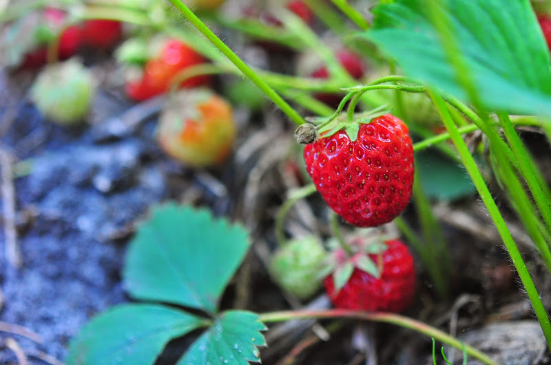 it is a very good year for strawberries. they came on just in time for sabin's party last weekend and we were able to pick a huge, impressive bowl that day. then we were too busy to pick more than just enough to eat