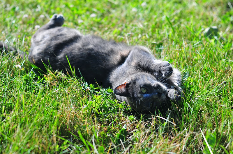 woody was very helpful. he would lie on the best berries, protecting them, i'm sure. the cats were all happy that we were out there, hanging out in the garden and molly and little bear also stopped by to "help."