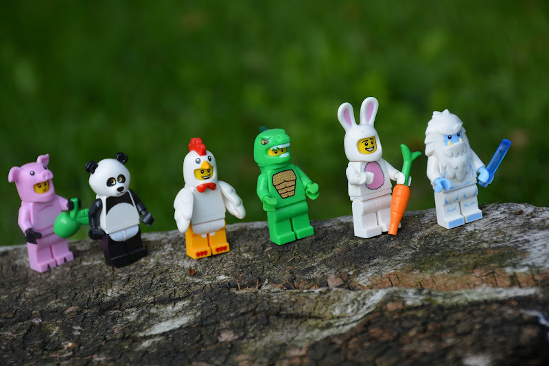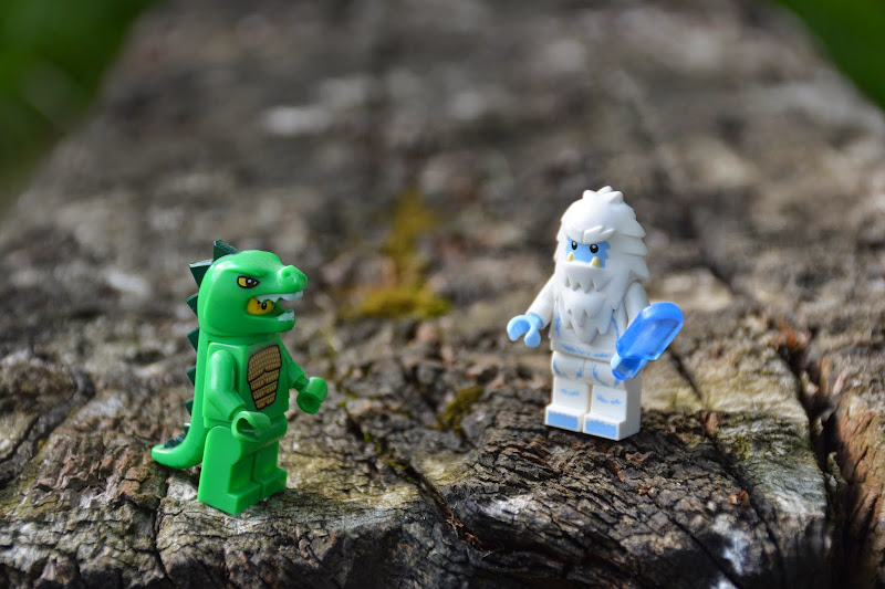 and this has made me think about my own minifig photos. for the most part, i take them in a single setting...in the nice light in the windowsill of our living room, on an old-fashioned scale. for me, my photos of them are less a small story staged in a small scene (unless i use them to tell a story here), than they are a catalog of which minifigs i have. after i photograph them there, i'm actually even able to give them away if they happen to suit someone who comes by (because everyone needs a yeti with a popsicle at some point). but aside from