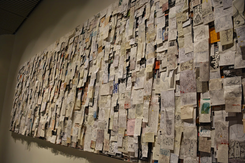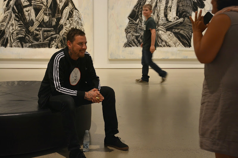 tattoo artist turned regular artist wes lang's studio exhibition was closing when we were at ARoS and so we were fortunate enough to see the man himself, since he was there to see it one last time. he was super gracious and talked to people and was totally willing to pose for pictures with all sorts of random strangers.