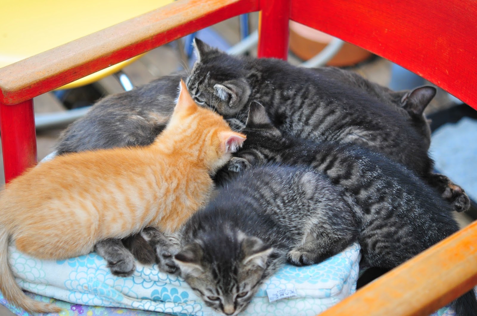 happily, we don't have feral cats, as this wild bunch is as tame and sweet as can be. one of them went to his new home as well - he was a special one, with a bit of frankie factor about him. but i also know he'll be loved and cared for very much at his new home. now there's only four to go.
