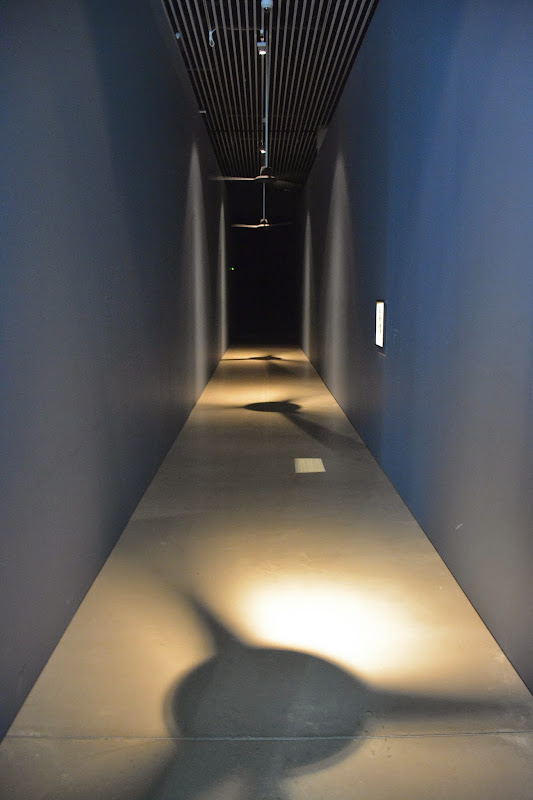 i probably enjoyed the out of the darkness exhibition on the 6th floor best. mostly because i separated from the kids and went through it on my own. tho' there were others, i somehow had it mostly to myself as i walked through and i'll admit i like it best like that. this photo doesn't do it justice, but there was something quite powerful about walking down this darkened hallway with big fans turning slowly above. it felt dramatic and like i was contributing to the art itself through the act of walking down the hallway.