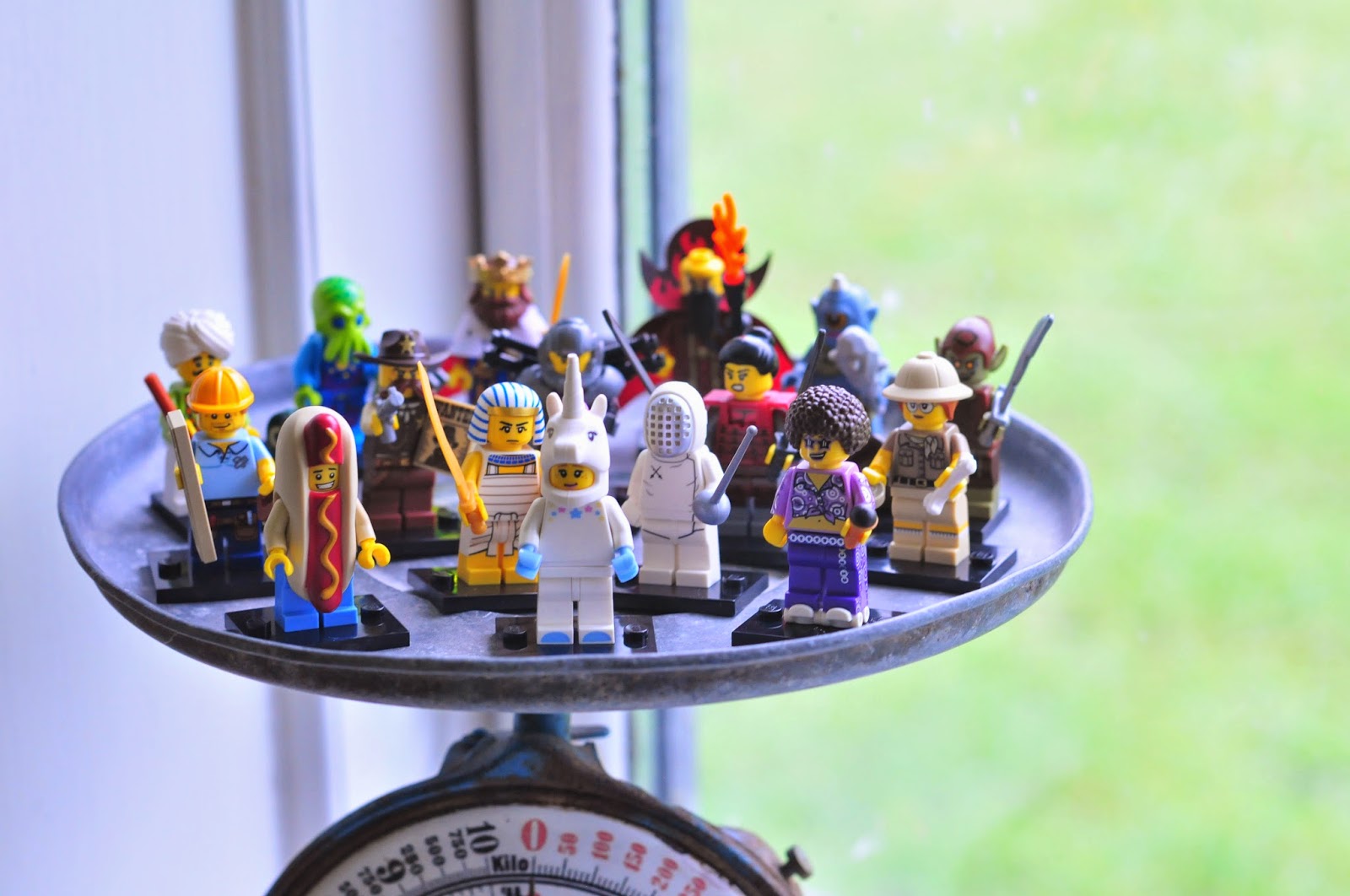 i'll admit it, having access to a whole box of fresh series 13 minifigs and just cutting them all open with a scissors and collecting the whole set immediately, while a great privilege, does not fill me with the excitement i felt when i first discovered collectible minifigures at the grocery store back in the summer of 2013. of course, i am pleased to have the whole collection and i do delight in the details in the same way as i did then - the little paleontologist has a cute bone and a little round fossil and the roller skate-wearing groovy singer is so cute, but the thrill of the hunt is gone. that feeling of excitement of not really being sure which ones you got - of opening each package and squealing in delight or groaning because it's another lady cyclops. the pull of going back for more because there's still one more that you just have to have. i miss that.