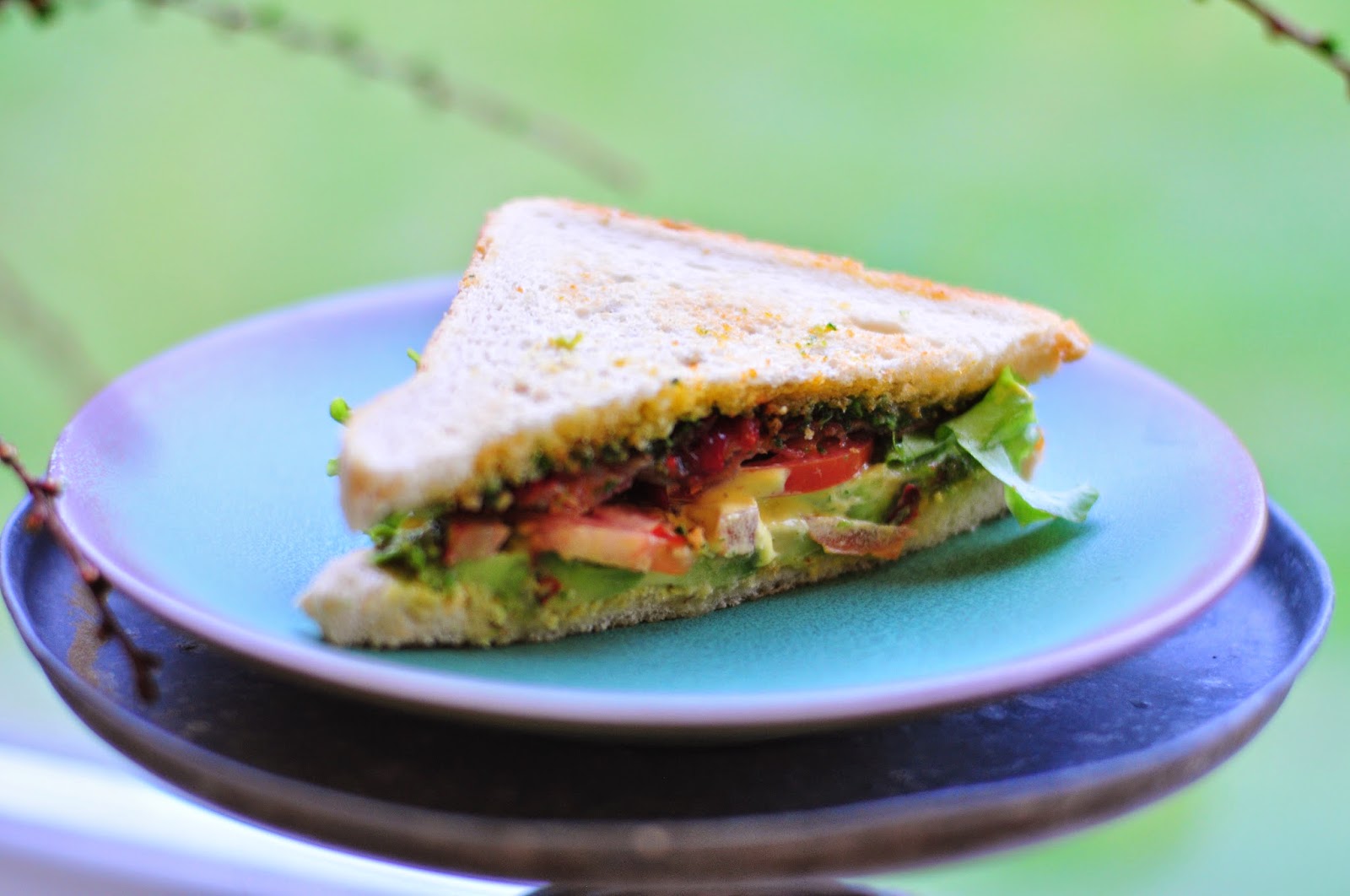 the blt. with homemade nettle pesto, aioli, avocado and thinly-sliced red onion.