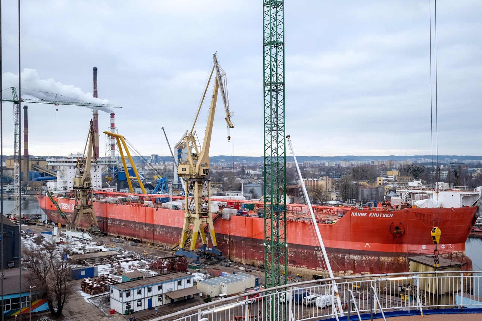 so much to write about (after a long, dry spell, i've got a ton of notes in my little bloggy notebook), but my connection is a bit iffy and they're going to black out the starboard side of the ship to change some breakers, so these photos of the fabulous remontowa shipyard in gdansk will have to suffice for now. this is from the back deck, tenth story of our ship.
