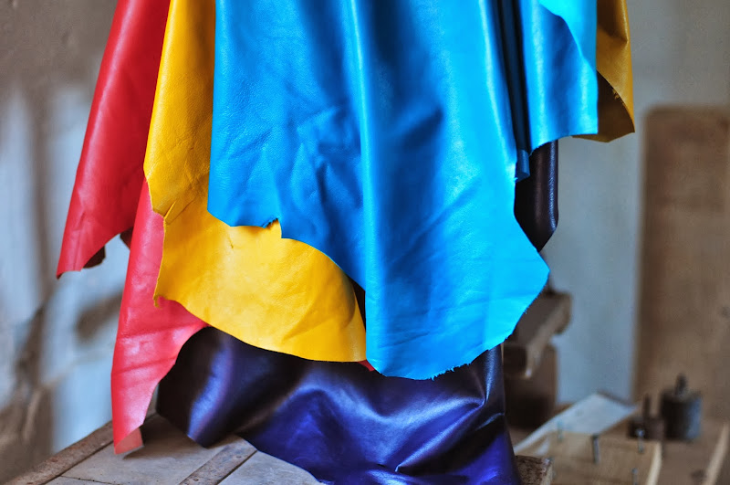 the leather store is a decidedly dangerous place. i couldn't resist these four hides. the dark purple is for lining the springbok purse. i'm not sure yet what i'll do with the others, but i intend to think of something. sometimes it just helps, having new supplies.