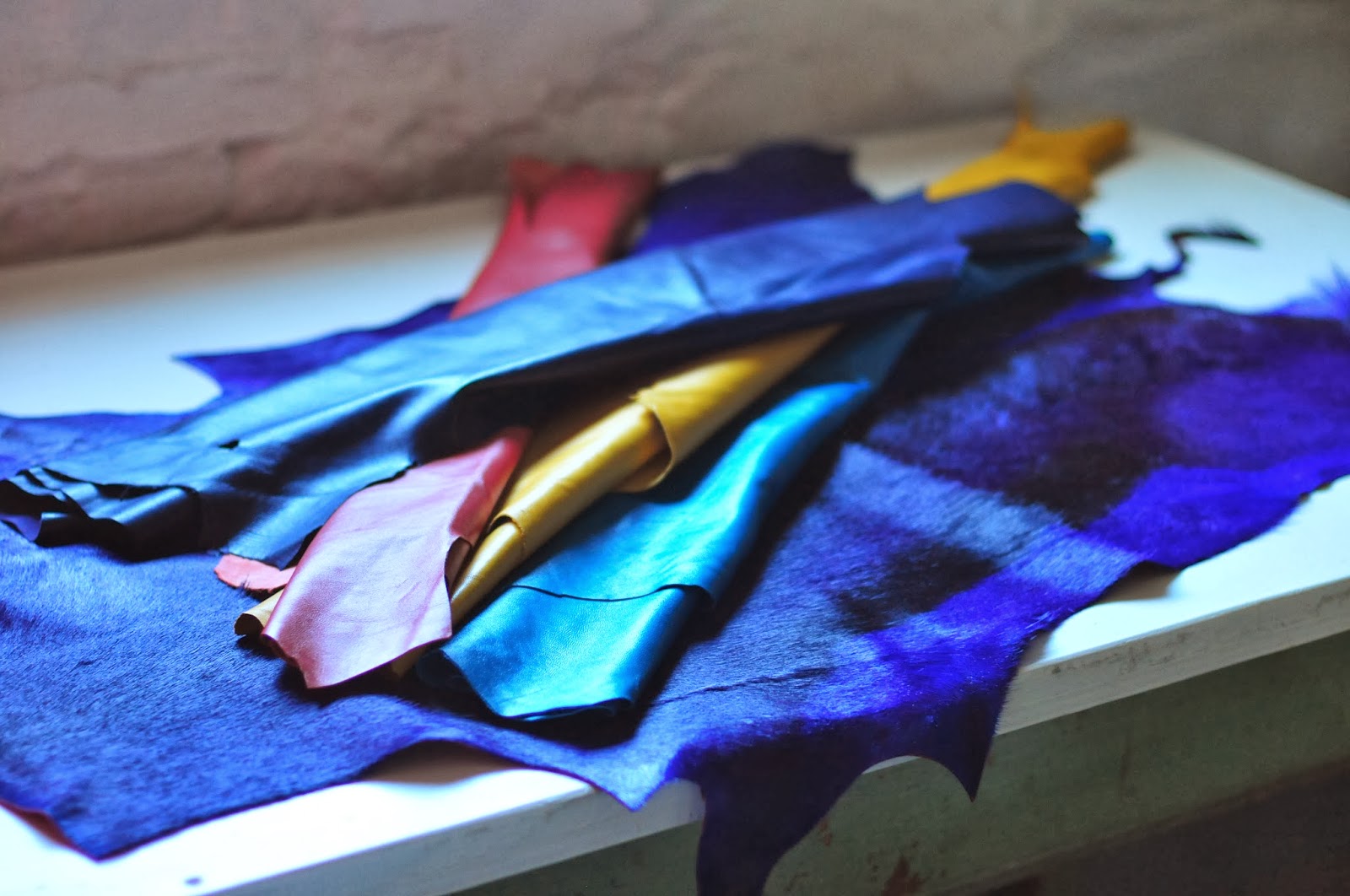 soft and supple, fabric-like goat leathers + a springbok hide in purple (i know it looks blue here, but it's really purple). i'm planning on making myself a new purse in these couple of weeks i have before i start my new job.