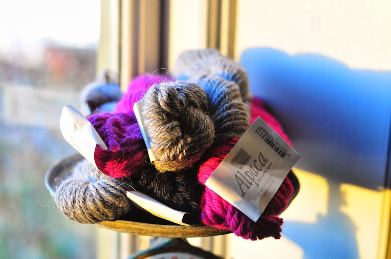and lastly, a bit of soft, snuggly alpaca to make a scarf. i'm going to venture away from my knit-stitch only knitting and actually try some other stitches! wish me luck!