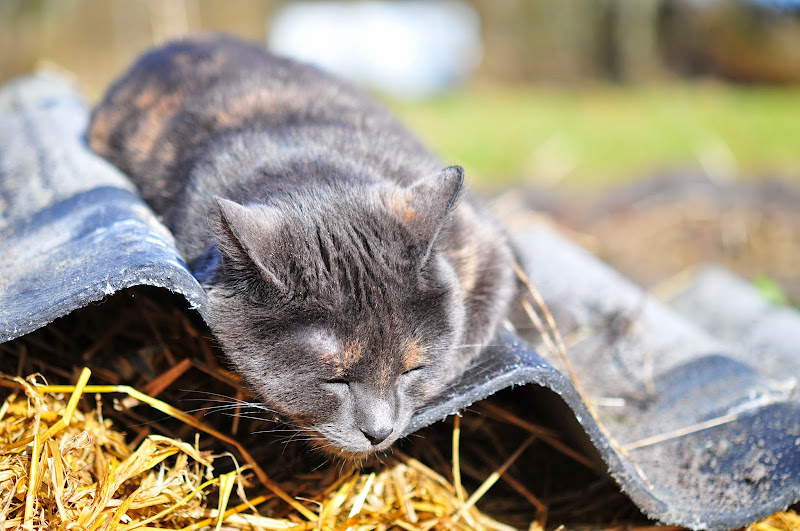 molly loved that we were in the garden and obviously also loved the sunshine. she snoozed on a warm roof tile (it's part of a cover we put over our artichokes to keep them from being killed by the hard frosts. it was a perfect spot to relax in the sun.