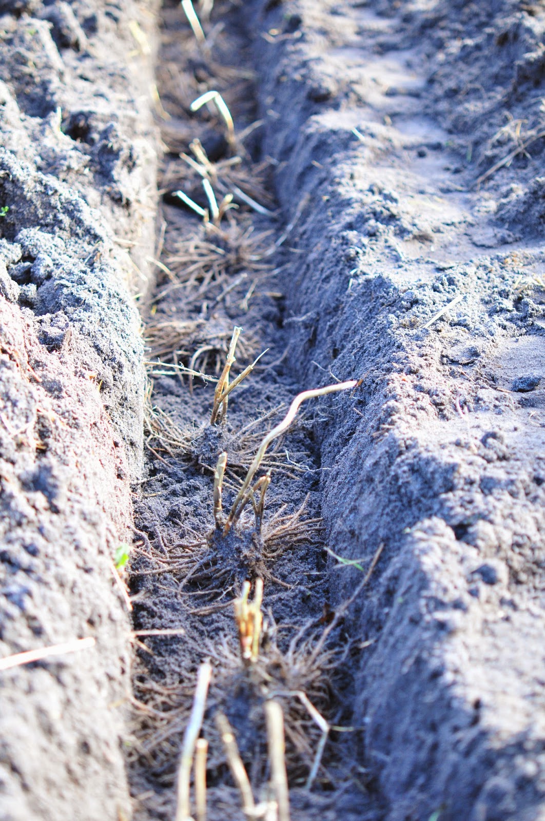 finally. a day of sunshine and no wind. a real spring day. husband had a day off and we finally moved that row of asparagus that was way too close to the rhubarb. these are asparagus roots that we started from seed our second year here. how they're 4 years old and very substantial. we hope moving them won't have traumatized them too much and that they'll have a good season. dad had loads of asparagus in his garden and he was known for it all over town, so having a long row of healthy asparagus roots makes me feel very happy. i know that if he was able to see our project today, he was smiling.